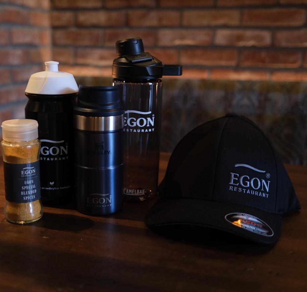 På EGON finner du et utvalg EGON-merch – små og store produkter som lar deg fortsette stemningen hjemme i din egen stue, på kjøkkenet eller ute på tur. Enten du vil lage middag med EGON-krydderet, nyte kaffen i en ekte Egon-kopp, eller bare se smashing ut i en EGON-caps.