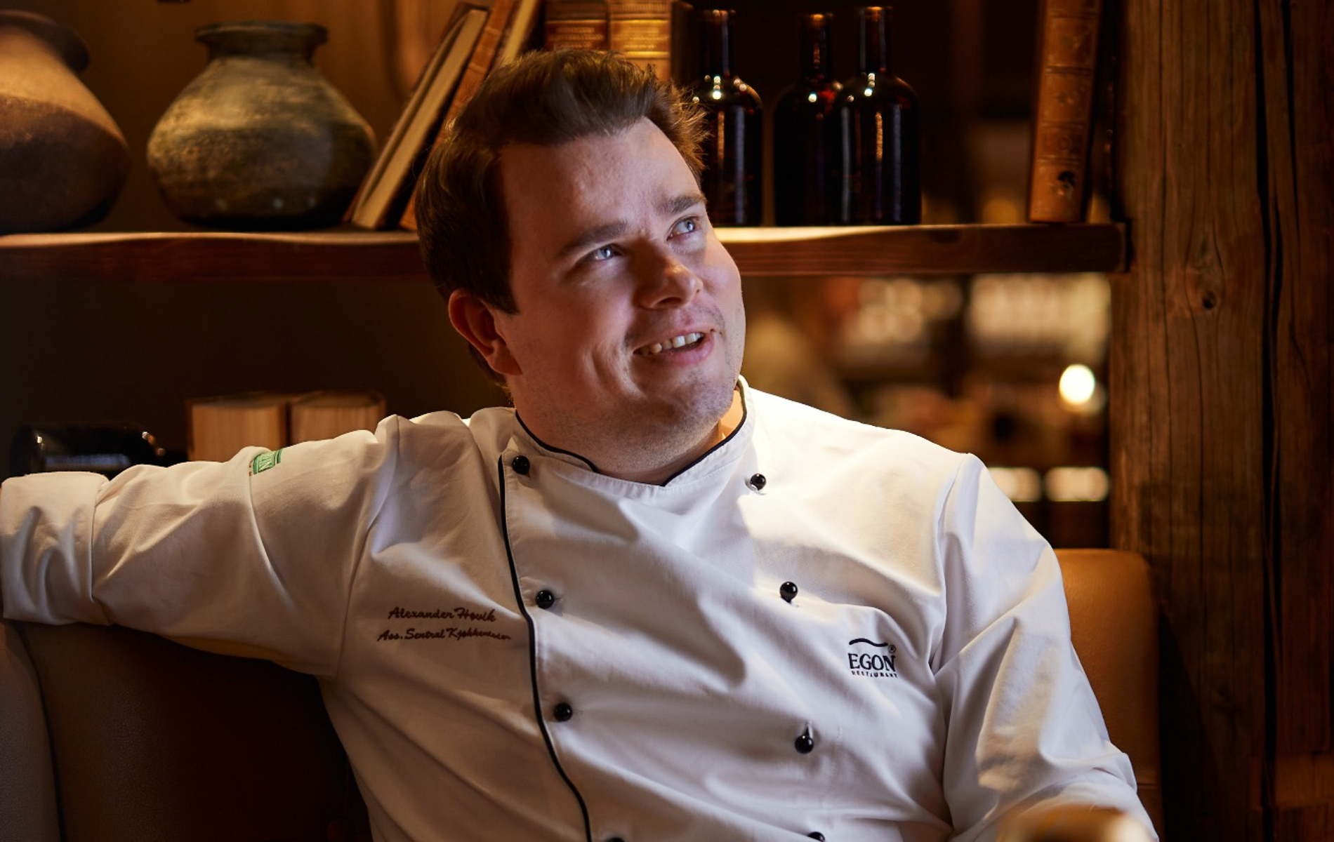 Alexander Høvik, sentral kjøkkenleder, setter seg godt tilbake i sofaen på EGON.