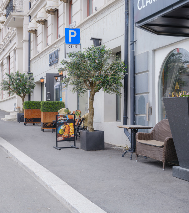 Hva med en avslappende lunsjpause midt i byens pulserende atmosfære? EGON gir deg muligheten til å puste ut sammen med de du er glad i. Ikke gå glipp av våre herlige middagsretter, enten du spiser hos oss eller bestiller take away for en smakfull middag hjemme. På sommerhalvåret kan du nyte et godt glass på vår flotte uteservering. Her kan du nyte en bedre middag samtidig som du sitter på orkesterplass for å se hva som skjer i sentrum.